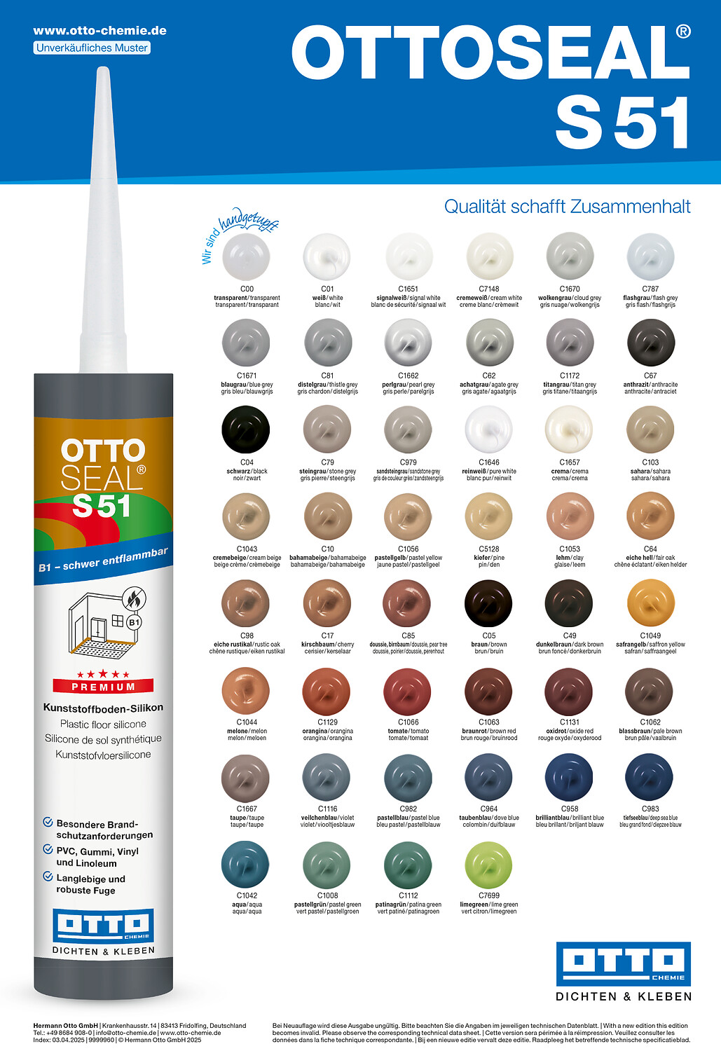 Mit Bestellcode versehene Produkte, Gebinde und/oder Farben sind in handelsüblichen Mengen ab Lager verfügbar.