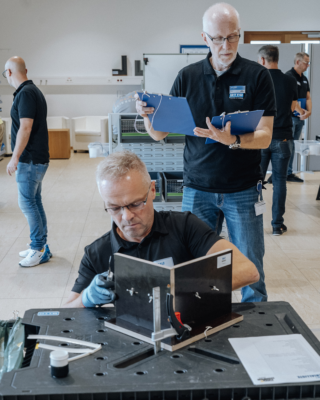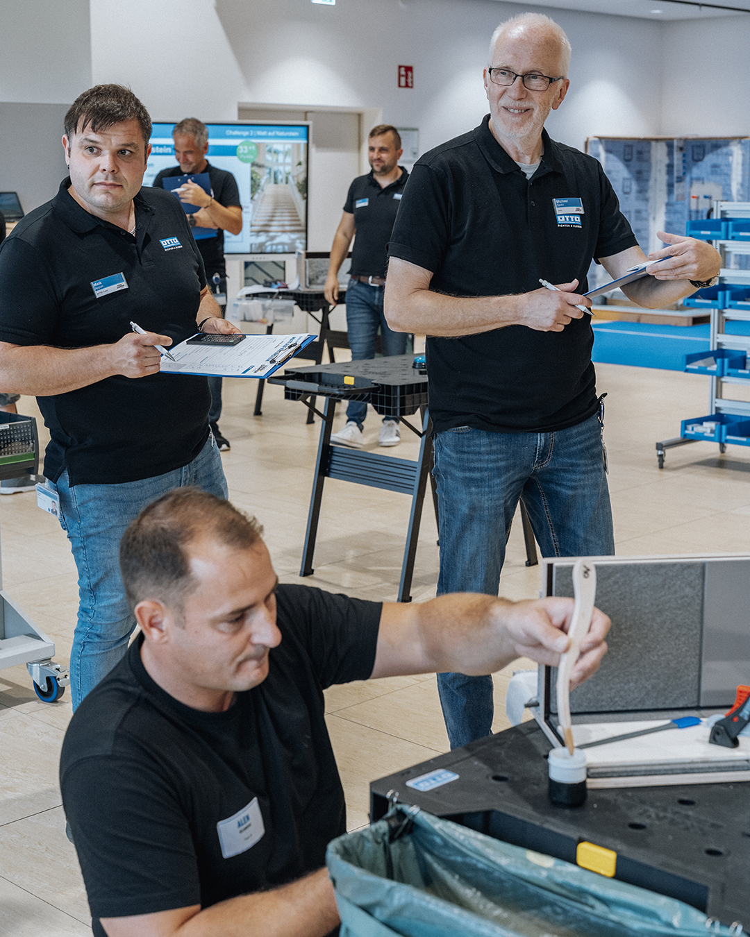 Ende September 2025 veranstalteten wir zum ersten Mal den OTTO Fugen Champion Wettbewerb. Wir wollten wissen, wer zieht die besten Fugen und das unter Zeitdruck. Im Vorfeld hatten sich etliche Fugenprofis für den Wettbewerb beworben, wir wählten die besten von ihnen aus. Die Fugenprofis mussten sich in zwei Gruppen in drei anspruchsvollen 20 minütigen Challenges beweisen. Das Event war nicht nur ein spannender Wettkampf auf höchstem handwerklichem Niveau, sondern vor allem ein inspirierendes Treffen echter Profis: voller Austausch, Fachgespräche und Begeisterung fürs Handwerk. Fugen Champion 2025 zeigte eindrucksvoll, wie stark die Verarbeiter-Community ist – und wie wertvoll der direkte Dialog zwischen Handwerk und OTTO sein kann. Ein Tag, der verbindet – durch Können, Leidenschaft und gemeinsame Werte.